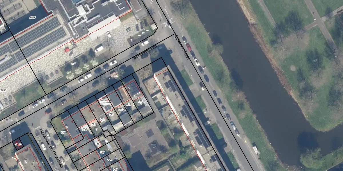Het perceel waarop Columbuslaan 289 staat heeft een oppervlakte van 6565 m². Dit is een zeer groot perceel. De perceeloppervlakte wordt geregistreerd door het Kadaster. Gedetailleerde informatie over de maten van dit perceel kunt u vinden in het rapport Kadastrale kaart met maatvoering van Columbuslaan 289.