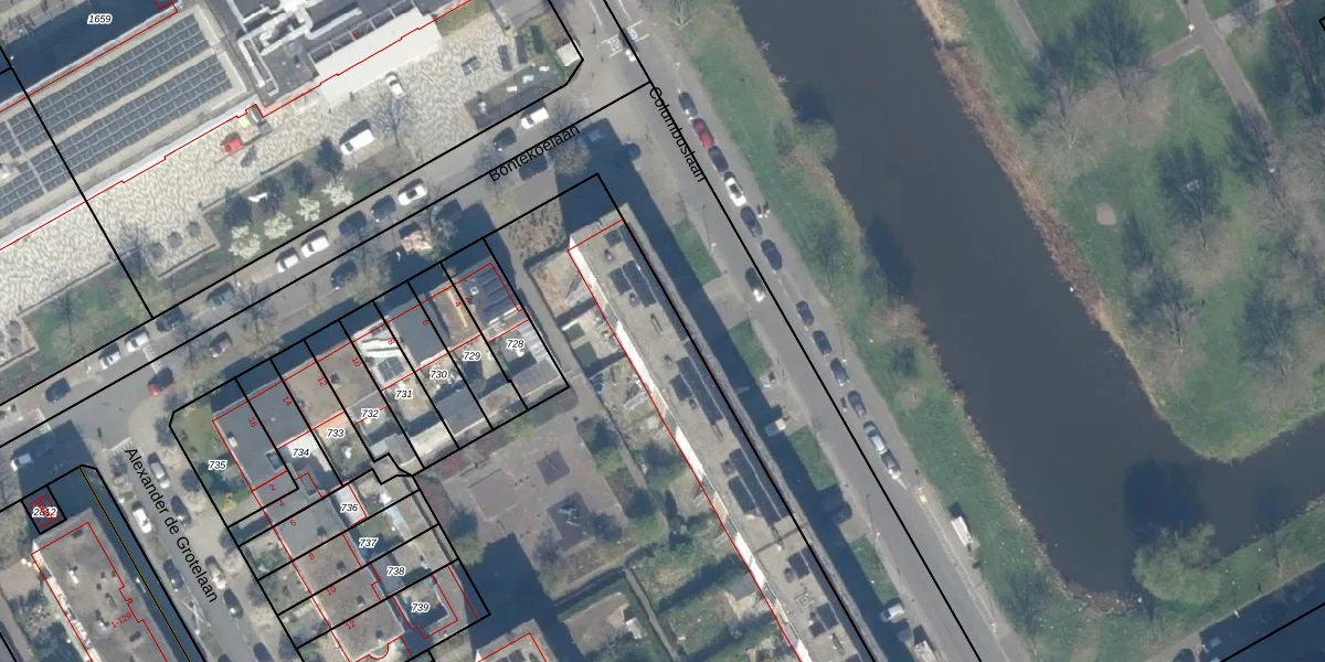 Het perceel waarop Columbuslaan 291 staat heeft een oppervlakte van 6565 m². Dit is een zeer groot perceel. De perceeloppervlakte wordt geregistreerd door het Kadaster. Gedetailleerde informatie over de maten van dit perceel kunt u vinden in het rapport Kadastrale kaart met maatvoering van Columbuslaan 291.