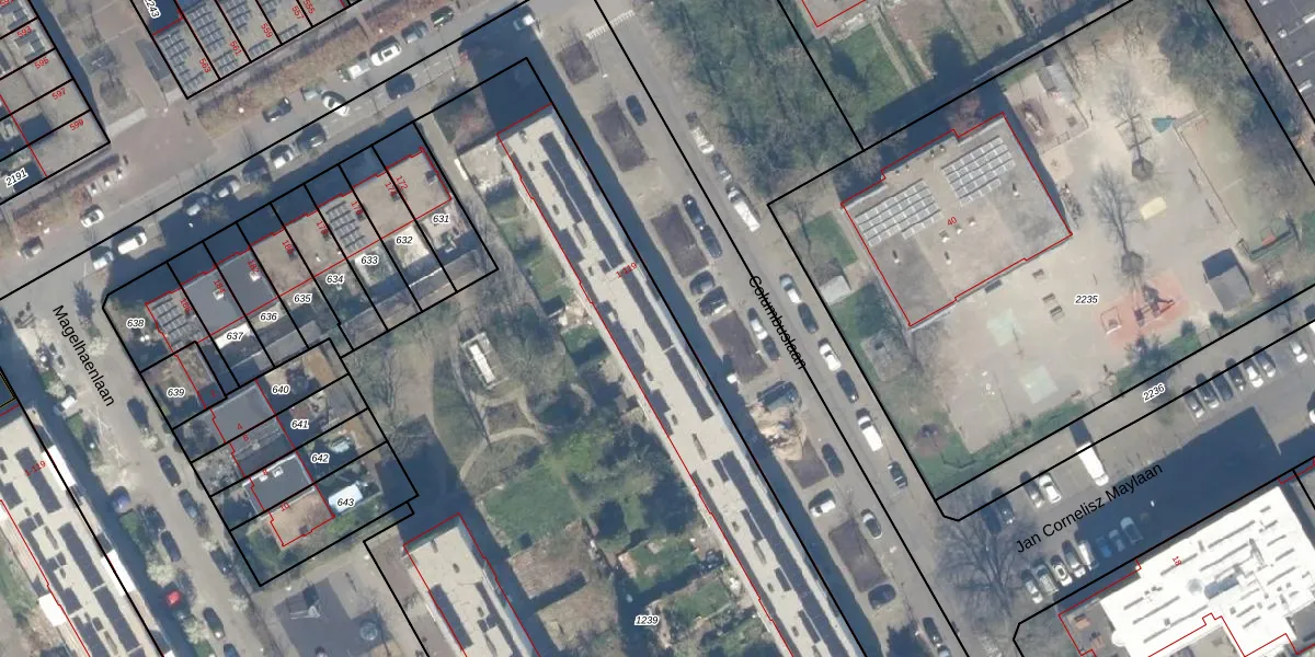 Het perceel waarop Columbuslaan 41 staat heeft een oppervlakte van 6922 m². Dit is een zeer groot perceel. De perceeloppervlakte wordt geregistreerd door het Kadaster. Gedetailleerde informatie over de maten van dit perceel kunt u vinden in het rapport Kadastrale kaart met maatvoering van Columbuslaan 41.
