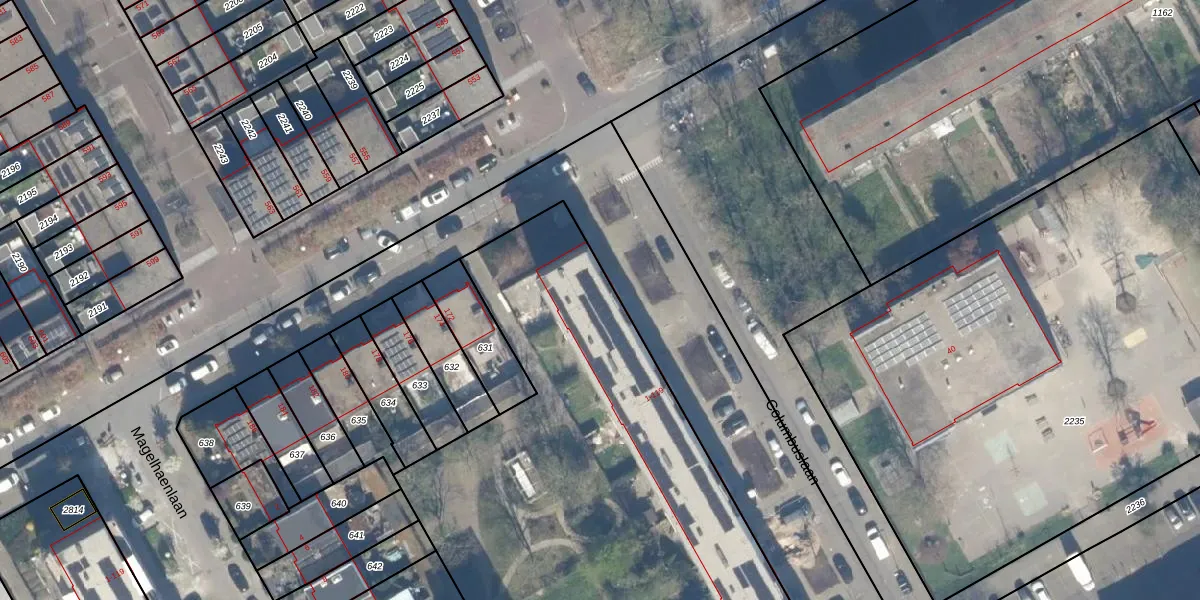 Het perceel waarop Columbuslaan 9 staat heeft een oppervlakte van 6922 m². Dit is een zeer groot perceel. De perceeloppervlakte wordt geregistreerd door het Kadaster. Gedetailleerde informatie over de maten van dit perceel kunt u vinden in het rapport Kadastrale kaart met maatvoering van Columbuslaan 9.
