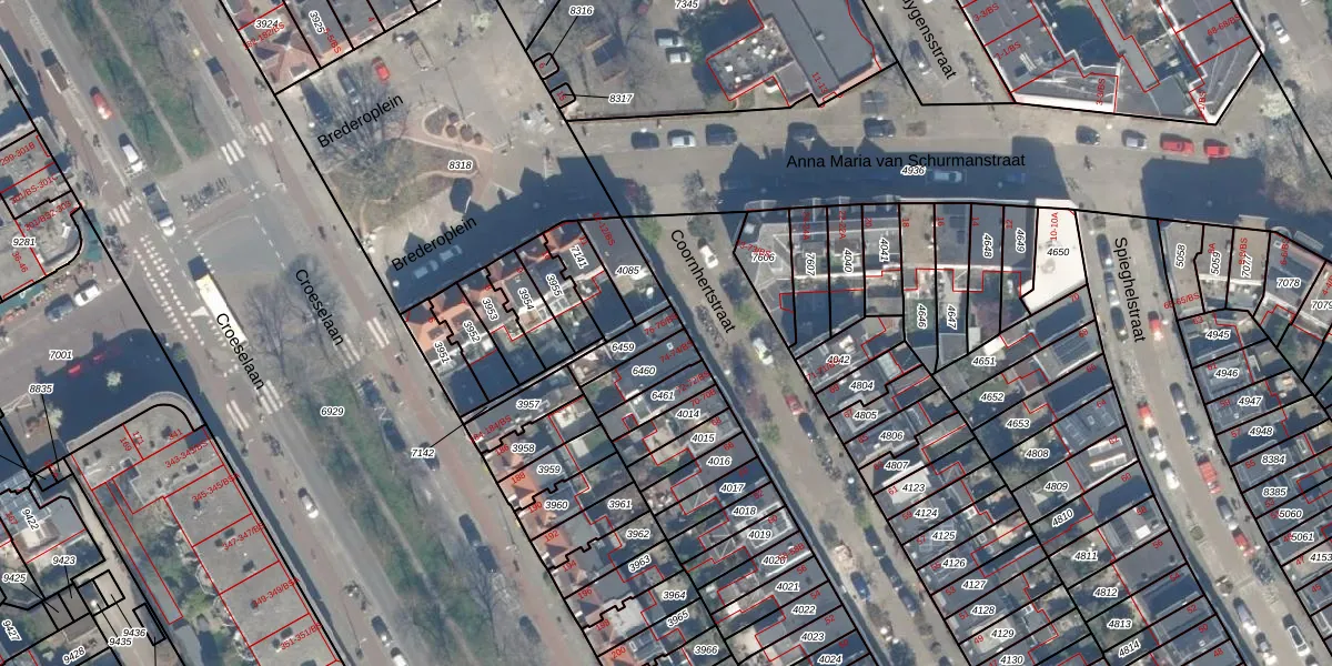 Het perceel waarop het adres ligt is CTR00-D-6459. De afkorting 'CTR00' staat voor kadastrale gemeente Catharijne. Het perceel is 72 m² groot. Dat is kleiner dan de gemiddelde perceeloppervlakte in Catharijne, dat op 828,25 m² ligt. Het kleinste perceel in de kadastrale gemeente is 0 m² groot. De grootste perceeloppervlakte is 35,6 ha. Er zijn 2 adressen aanwezig op het perceel. In de Basisregistratie Kadaster (BRK) werden de grenzen van het perceel geregistreerd op 19-09-1997.