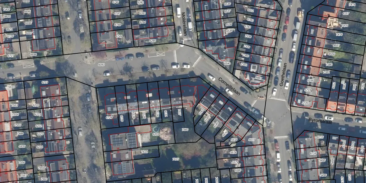 Het perceel waarop Corneillelaan 16 staat heeft een oppervlakte van 377 m². Dit is een groot perceel. De perceeloppervlakte wordt geregistreerd door het Kadaster. Gedetailleerde informatie over de maten van dit perceel kunt u vinden in het rapport Kadastrale kaart met maatvoering van Corneillelaan 16.