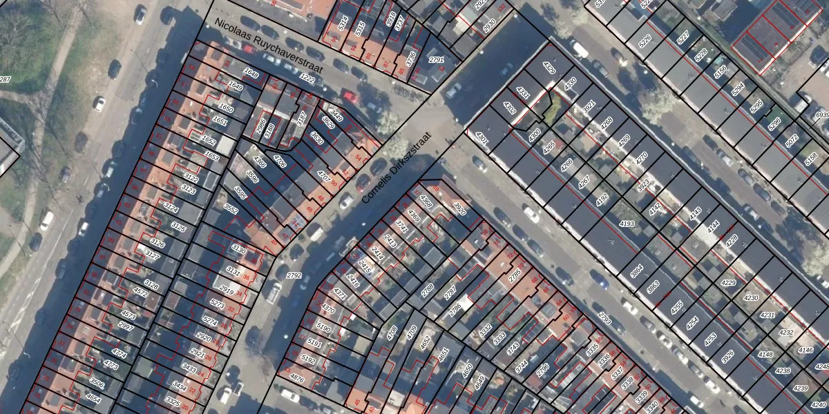 Het perceel waarop Cornelis Dirkszstraat 35 staat heeft een oppervlakte van 76 m². Dit is een klein perceel. De perceeloppervlakte wordt geregistreerd door het Kadaster. Gedetailleerde informatie over de maten van dit perceel kunt u vinden in het rapport Kadastrale kaart met maatvoering van Cornelis Dirkszstraat 35.