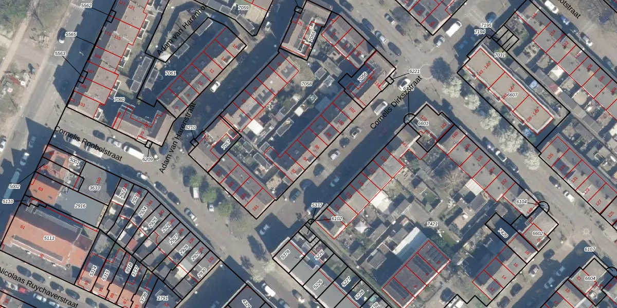 Het perceel waarop Cornelis Dirkszstraat 94 staat heeft een oppervlakte van 1715 m². Dit is een zeer groot perceel. De perceeloppervlakte wordt geregistreerd door het Kadaster. Gedetailleerde informatie over de maten van dit perceel kunt u vinden in het rapport Kadastrale kaart met maatvoering van Cornelis Dirkszstraat 94.