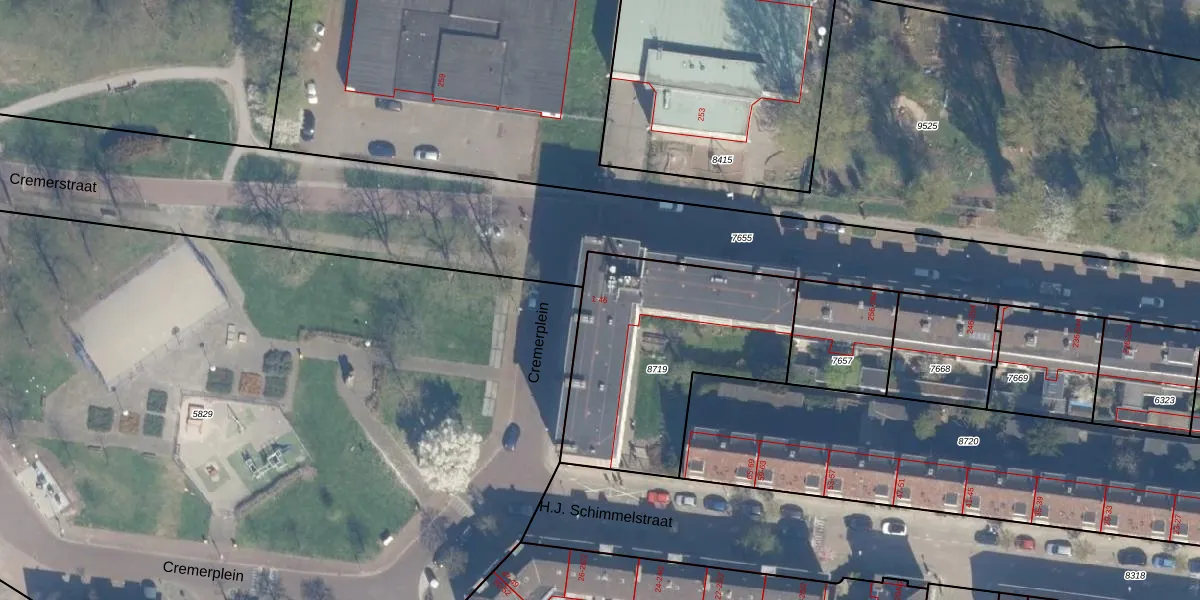 Het perceel waarop Cremerplein 11 staat heeft een oppervlakte van 990 m². Dit is een groot perceel. De perceeloppervlakte wordt geregistreerd door het Kadaster. Gedetailleerde informatie over de maten van dit perceel kunt u vinden in het rapport Kadastrale kaart met maatvoering van Cremerplein 11.