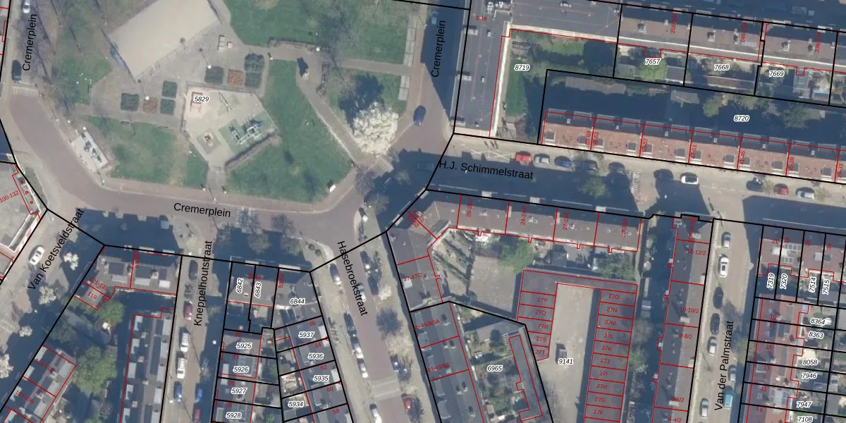 Het perceel waarop Cremerplein 48 staat heeft een oppervlakte van 3700 m². Dit is een zeer groot perceel. De perceeloppervlakte wordt geregistreerd door het Kadaster. Gedetailleerde informatie over de maten van dit perceel kunt u vinden in het rapport Kadastrale kaart met maatvoering van Cremerplein 48.