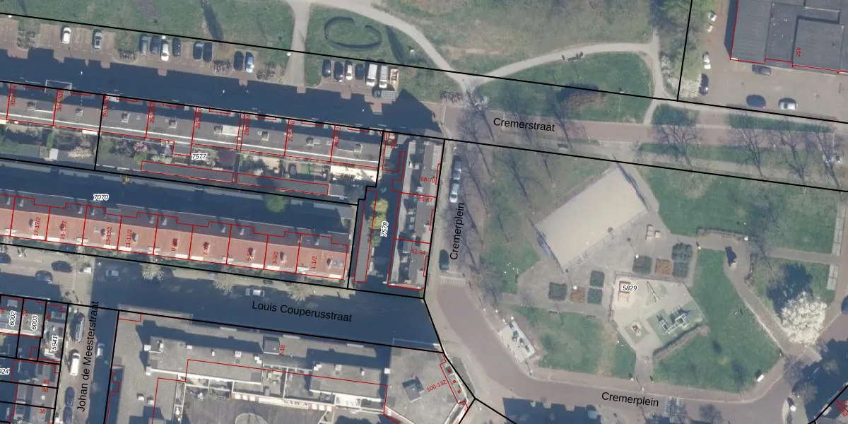 Het perceel waarop Cremerplein 65 staat heeft een oppervlakte van 636 m². Dit is een groot perceel. De perceeloppervlakte wordt geregistreerd door het Kadaster. Gedetailleerde informatie over de maten van dit perceel kunt u vinden in het rapport Kadastrale kaart met maatvoering van Cremerplein 65.