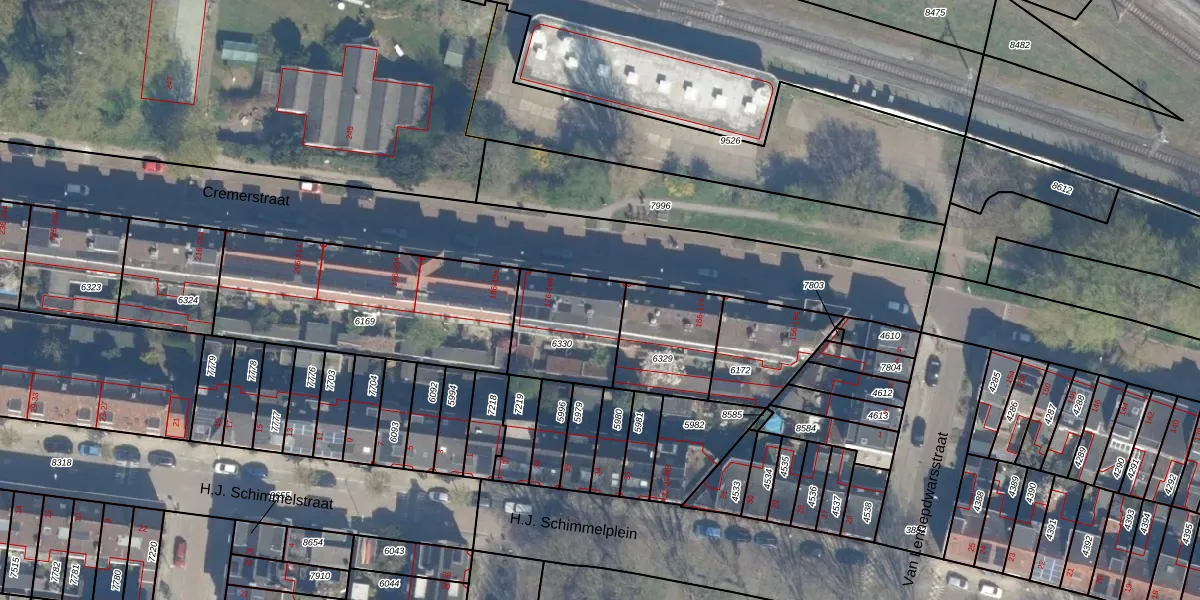 Het perceel waarop Cremerstraat 176 staat heeft een oppervlakte van 316 m². Dit is een groot perceel. De perceeloppervlakte wordt geregistreerd door het Kadaster. Gedetailleerde informatie over de maten van dit perceel kunt u vinden in het rapport Kadastrale kaart met maatvoering van Cremerstraat 176.