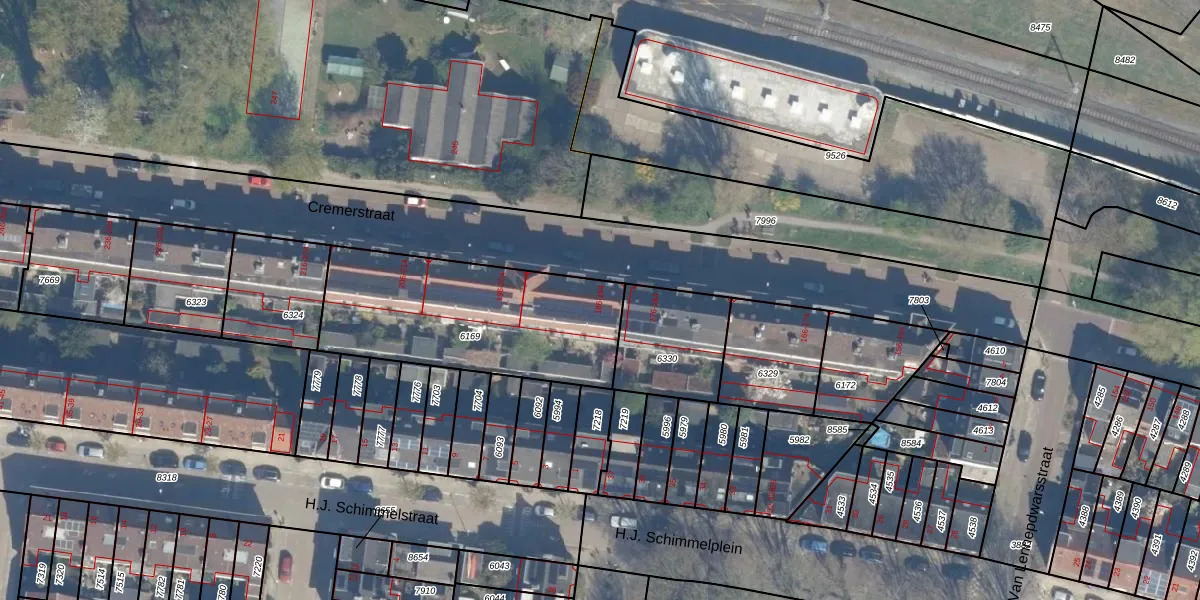 Het perceel waarop Cremerstraat 190 staat heeft een oppervlakte van 878 m². Dit is een groot perceel. De perceeloppervlakte wordt geregistreerd door het Kadaster. Gedetailleerde informatie over de maten van dit perceel kunt u vinden in het rapport Kadastrale kaart met maatvoering van Cremerstraat 190.