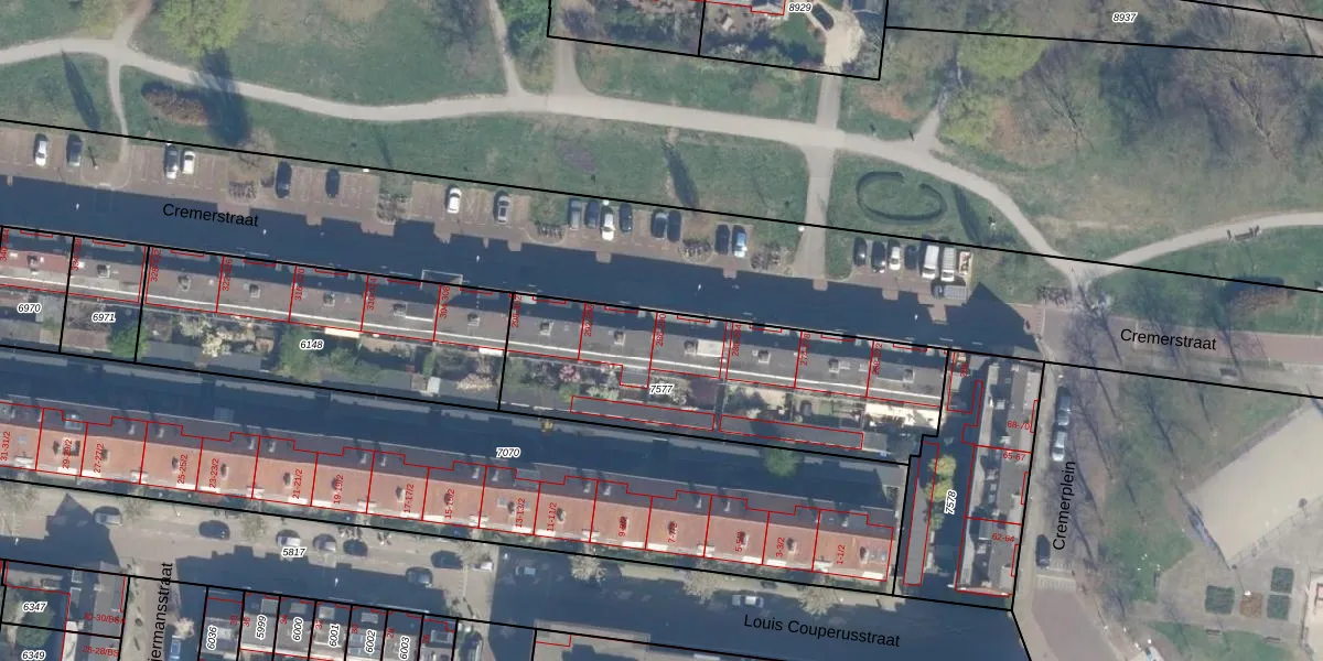 Het perceel waarop Cremerstraat 290 staat heeft een oppervlakte van 1182 m². Dit is een zeer groot perceel. De perceeloppervlakte wordt geregistreerd door het Kadaster. Gedetailleerde informatie over de maten van dit perceel kunt u vinden in het rapport Kadastrale kaart met maatvoering van Cremerstraat 290.