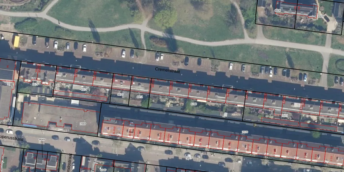 Het perceel waarop Cremerstraat 326 staat heeft een oppervlakte van 1000 m². Dit is een zeer groot perceel. De perceeloppervlakte wordt geregistreerd door het Kadaster. Gedetailleerde informatie over de maten van dit perceel kunt u vinden in het rapport Kadastrale kaart met maatvoering van Cremerstraat 326.