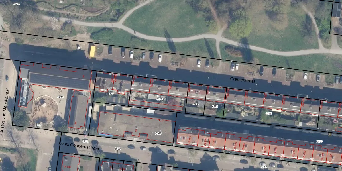 Het perceel waarop Cremerstraat 348 staat heeft een oppervlakte van 596 m². Dit is een groot perceel. De perceeloppervlakte wordt geregistreerd door het Kadaster. Gedetailleerde informatie over de maten van dit perceel kunt u vinden in het rapport Kadastrale kaart met maatvoering van Cremerstraat 348.