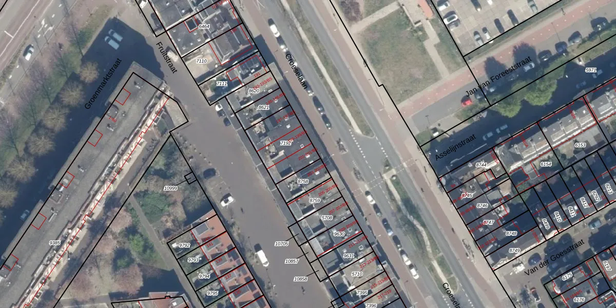 Croeselaan 201 is gelegen op kadastraal perceel CTR00D7192. Deze kadastrale aanduiding is uniek en wordt gebruikt door het Kadaster om eigendomsrechten en andere zakelijke rechten vast te leggen. Het perceel maakt onderdeel uit van de kadastrale gemeente Catharijne.