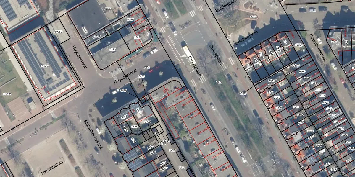 Het perceel waarop Croeselaan 341 staat heeft een oppervlakte van 3902 m². Dit is een zeer groot perceel. De perceeloppervlakte wordt geregistreerd door het Kadaster. Gedetailleerde informatie over de maten van dit perceel kunt u vinden in het rapport Kadastrale kaart met maatvoering van Croeselaan 341.