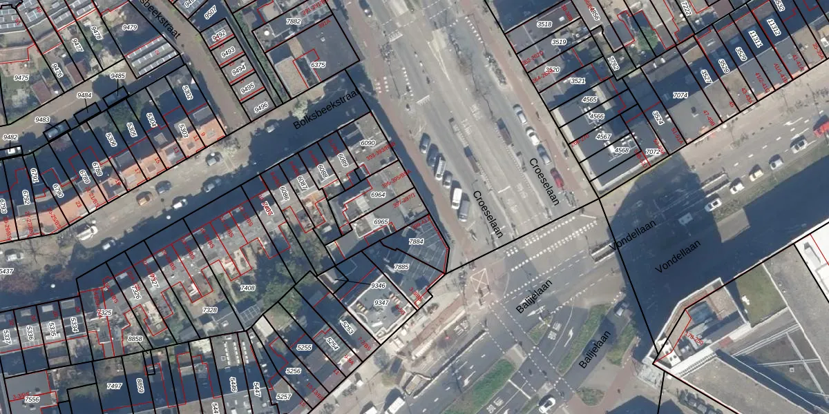 Croeselaan 397 is gelegen op kadastraal perceel CTR00D6965. Deze kadastrale aanduiding is uniek en wordt gebruikt door het Kadaster om eigendomsrechten en andere zakelijke rechten vast te leggen. Het perceel maakt onderdeel uit van de kadastrale gemeente Catharijne.