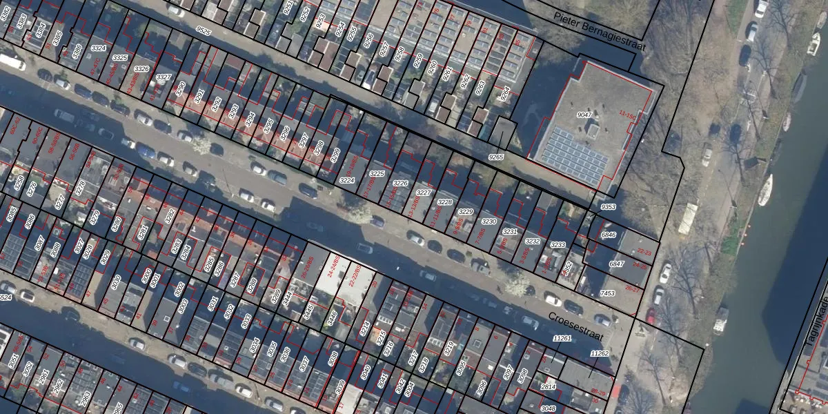 Croesestraat 13-BS is gelegen op kadastraal perceel CTR00D3227. Deze kadastrale aanduiding is uniek en wordt gebruikt door het Kadaster om eigendomsrechten en andere zakelijke rechten vast te leggen. Het perceel maakt onderdeel uit van de kadastrale gemeente Catharijne.