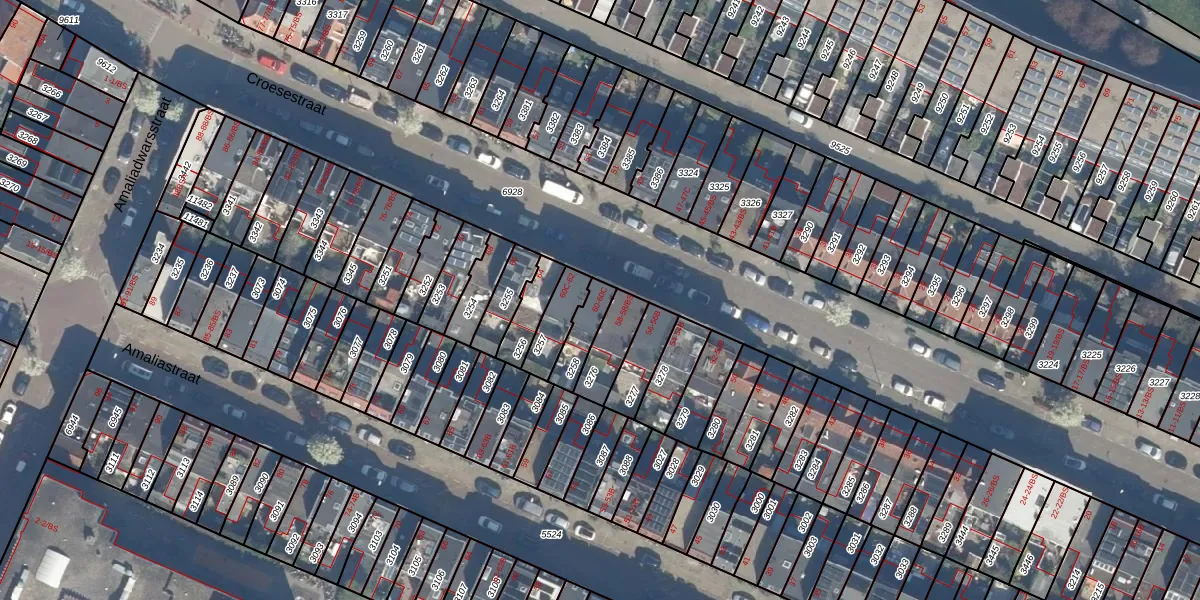 Het perceel waarop Croesestraat 60-B staat heeft een oppervlakte van 89 m². Dit is een klein perceel. De perceeloppervlakte wordt geregistreerd door het Kadaster. Gedetailleerde informatie over de maten van dit perceel kunt u vinden in het rapport Kadastrale kaart met maatvoering van Croesestraat 60-B.