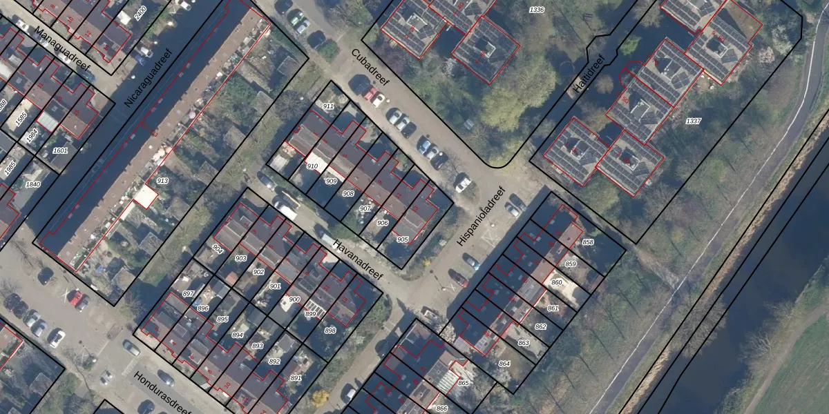 Het perceel waarop Cubadreef 13 staat heeft een oppervlakte van 163 m². Dit is een middelgroot perceel. De perceeloppervlakte wordt geregistreerd door het Kadaster. Gedetailleerde informatie over de maten van dit perceel kunt u vinden in het rapport Kadastrale kaart met maatvoering van Cubadreef 13.