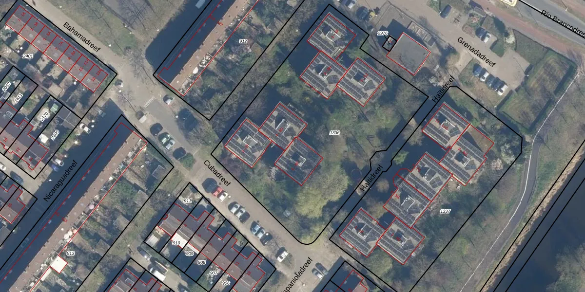 Het perceel waarop Cubadreef 6-F staat heeft een oppervlakte van 3010 m². Dit is een zeer groot perceel. De perceeloppervlakte wordt geregistreerd door het Kadaster. Gedetailleerde informatie over de maten van dit perceel kunt u vinden in het rapport Kadastrale kaart met maatvoering van Cubadreef 6-F.