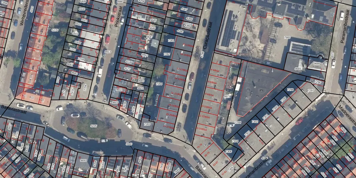 Het perceel waarop Curaçaostraat 21 staat heeft een oppervlakte van 733 m². Dit is een groot perceel. De perceeloppervlakte wordt geregistreerd door het Kadaster. Gedetailleerde informatie over de maten van dit perceel kunt u vinden in het rapport Kadastrale kaart met maatvoering van Curaçaostraat 21.