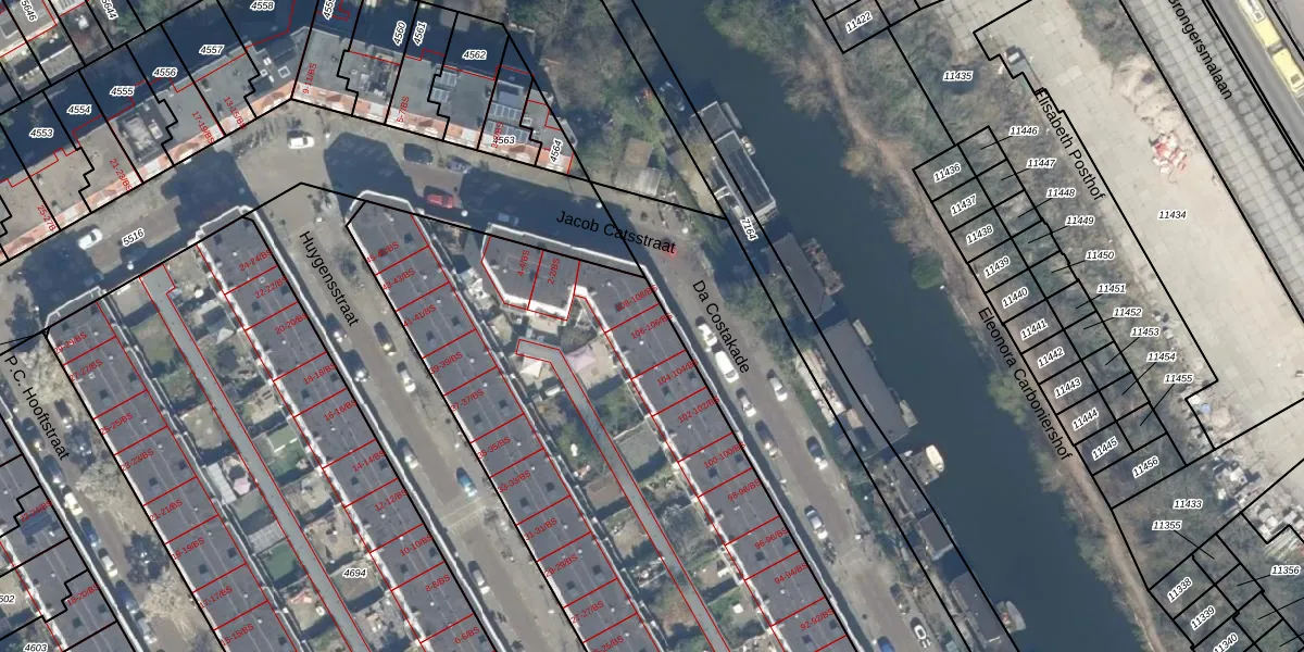 Da Costakade 106-BS is gelegen op kadastraal perceel CTR00D4695. Deze kadastrale aanduiding is uniek en wordt gebruikt door het Kadaster om eigendomsrechten en andere zakelijke rechten vast te leggen. Het perceel maakt onderdeel uit van de kadastrale gemeente Catharijne.