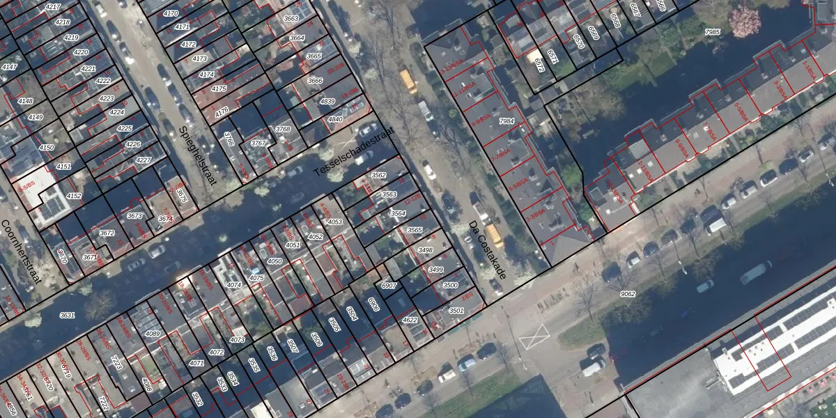 Het perceel waarop Da Costakade 12-B staat heeft een oppervlakte van 95 m². Dit is een klein perceel. De perceeloppervlakte wordt geregistreerd door het Kadaster. Gedetailleerde informatie over de maten van dit perceel kunt u vinden in het rapport Kadastrale kaart met maatvoering van Da Costakade 12-B.