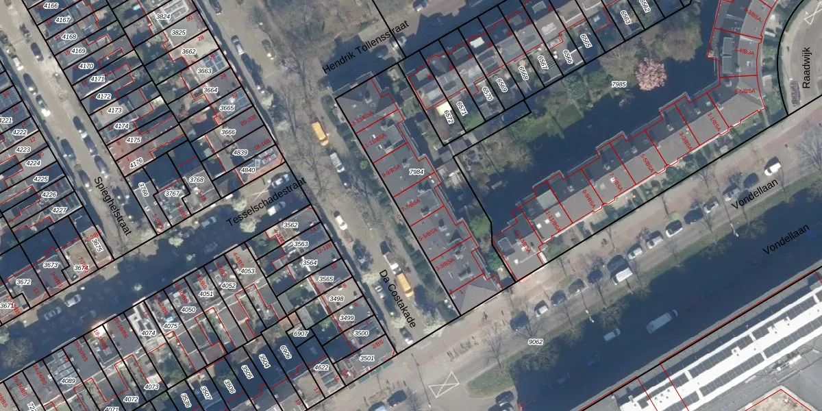 Da Costakade 7-BSA is gelegen op kadastraal perceel CTR00D7984. Deze kadastrale aanduiding is uniek en wordt gebruikt door het Kadaster om eigendomsrechten en andere zakelijke rechten vast te leggen. Het perceel maakt onderdeel uit van de kadastrale gemeente Catharijne.