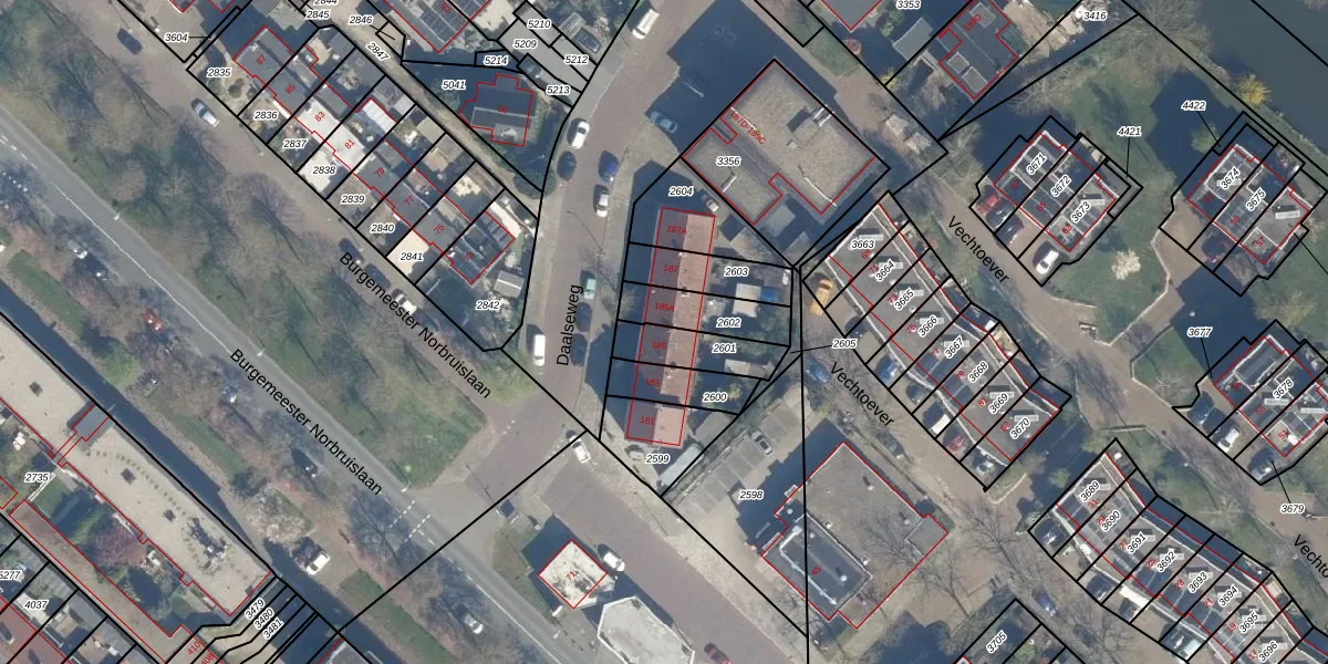 Gebruik de zoekbalk of klik op een perceel voor informatie over de adressen binnen dit perceel.