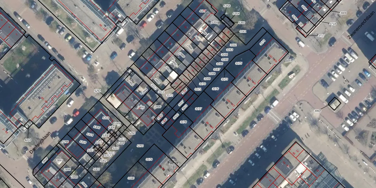 Gebruik de zoekbalk of klik op een perceel voor informatie over de adressen binnen dit perceel.