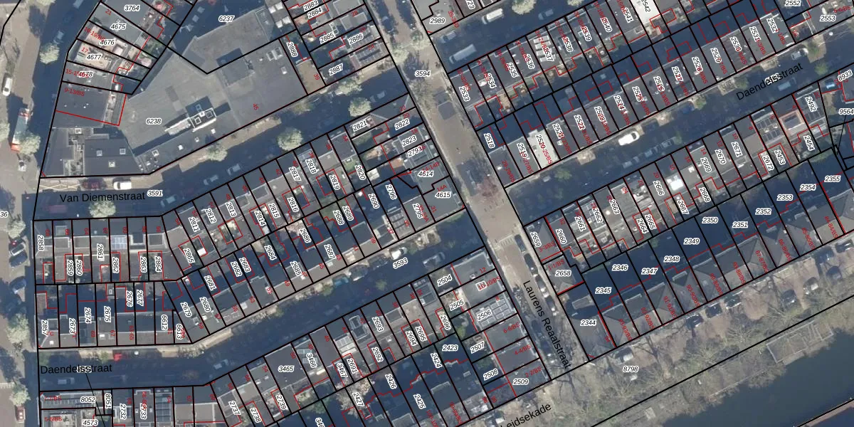 Het perceel waarop Daendelsstraat 33 staat heeft een oppervlakte van 61 m². Dit is een klein perceel. De perceeloppervlakte wordt geregistreerd door het Kadaster. Gedetailleerde informatie over de maten van dit perceel kunt u vinden in het rapport Kadastrale kaart met maatvoering van Daendelsstraat 33.