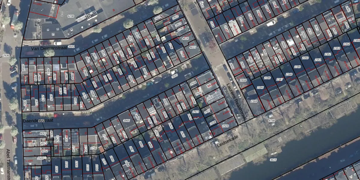 Gebruik de zoekbalk of klik op een perceel voor informatie over de adressen binnen dit perceel.
