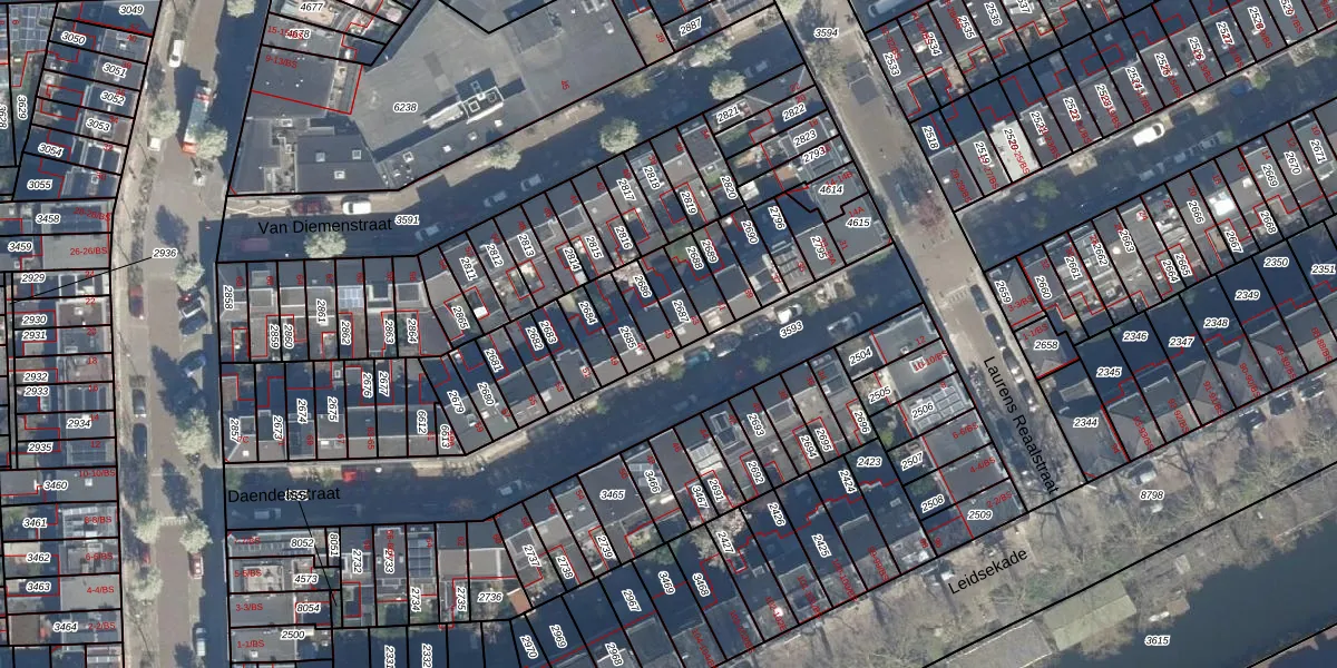 Het perceel waarop Daendelsstraat 45 staat heeft een oppervlakte van 67 m². Dit is een klein perceel. De perceeloppervlakte wordt geregistreerd door het Kadaster. Gedetailleerde informatie over de maten van dit perceel kunt u vinden in het rapport Kadastrale kaart met maatvoering van Daendelsstraat 45.