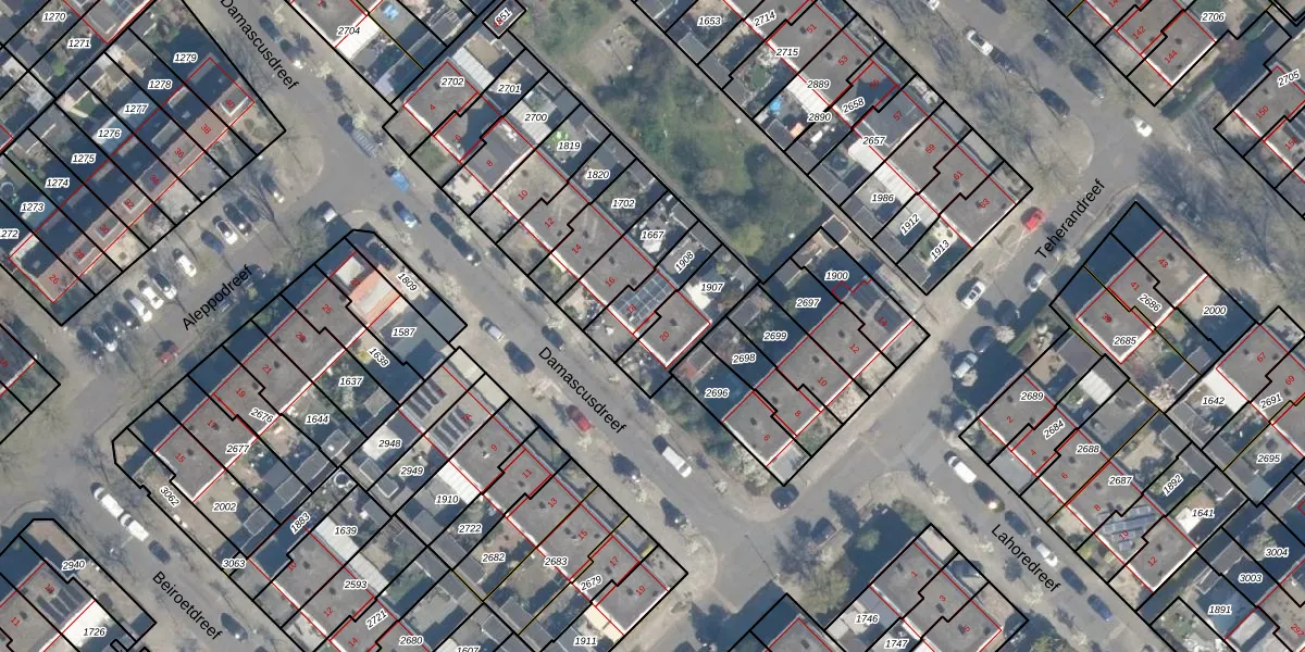 Het perceel waarop Damascusdreef 20 staat heeft een oppervlakte van 141 m². Dit is een middelgroot perceel. De perceeloppervlakte wordt geregistreerd door het Kadaster. Gedetailleerde informatie over de maten van dit perceel kunt u vinden in het rapport Kadastrale kaart met maatvoering van Damascusdreef 20.