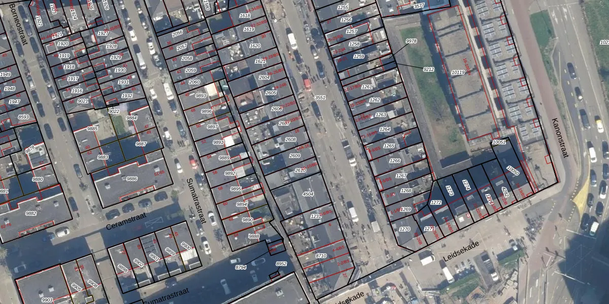 Het perceel waarop Damstraat 14-A staat heeft een oppervlakte van 99 m². Dit is een klein perceel. De perceeloppervlakte wordt geregistreerd door het Kadaster. Gedetailleerde informatie over de maten van dit perceel kunt u vinden in het rapport Kadastrale kaart met maatvoering van Damstraat 14-A.