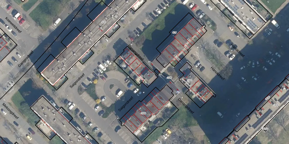 Het perceel waarop Danangdreef 9 staat heeft een oppervlakte van 397 m². Dit is een groot perceel. De perceeloppervlakte wordt geregistreerd door het Kadaster. Gedetailleerde informatie over de maten van dit perceel kunt u vinden in het rapport Kadastrale kaart met maatvoering van Danangdreef 9.