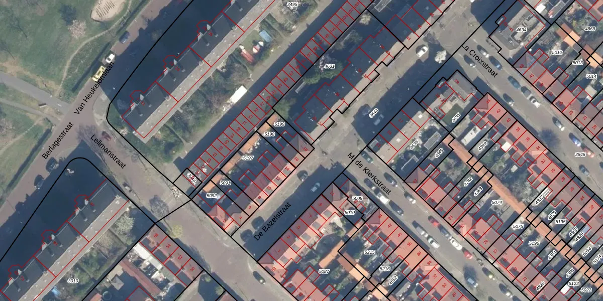 Het perceel waarop De Bazelstraat 18 staat heeft een oppervlakte van 83 m². Dit is een klein perceel. De perceeloppervlakte wordt geregistreerd door het Kadaster. Gedetailleerde informatie over de maten van dit perceel kunt u vinden in het rapport Kadastrale kaart met maatvoering van De Bazelstraat 18.