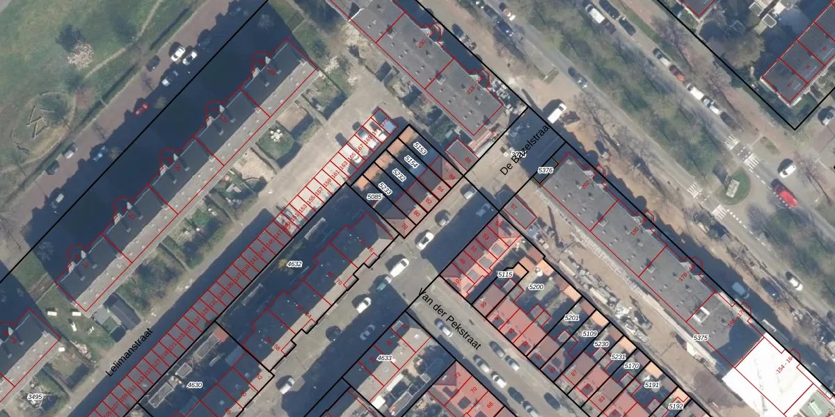 Gebruik de zoekbalk of klik op een perceel voor informatie over de adressen binnen dit perceel.