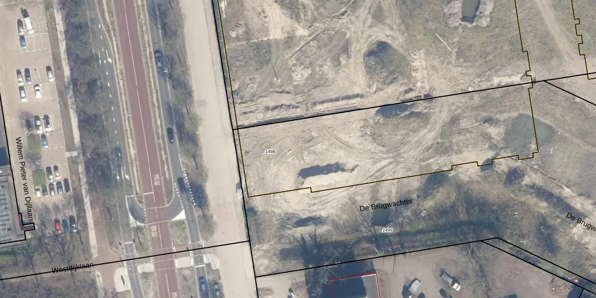 Het perceel waarop De Brugwachter 521 staat heeft een oppervlakte van 2392 m². Dit is een zeer groot perceel. De perceeloppervlakte wordt geregistreerd door het Kadaster. Gedetailleerde informatie over de maten van dit perceel kunt u vinden in het rapport Kadastrale kaart met maatvoering van De Brugwachter 521.