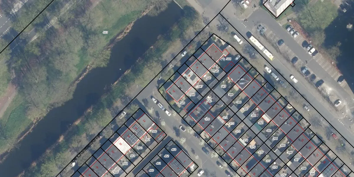 De Charmantedreef 12 is gelegen op kadastraal perceel UTT00H549. Deze kadastrale aanduiding is uniek en wordt gebruikt door het Kadaster om eigendomsrechten en andere zakelijke rechten vast te leggen. Het perceel maakt onderdeel uit van de kadastrale gemeente Utrecht.