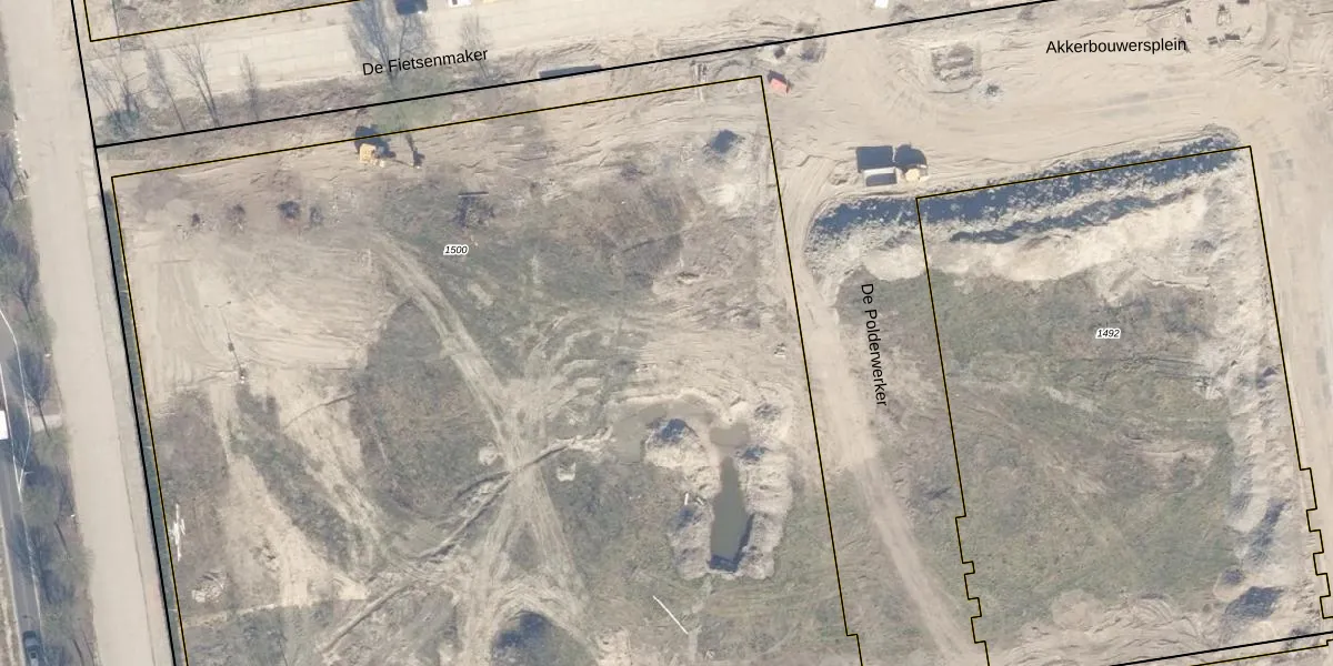 Het perceel waarop De Polderwerker 451 staat heeft een oppervlakte van 9430 m². Dit is een zeer groot perceel. De perceeloppervlakte wordt geregistreerd door het Kadaster. Gedetailleerde informatie over de maten van dit perceel kunt u vinden in het rapport Kadastrale kaart met maatvoering van De Polderwerker 451.