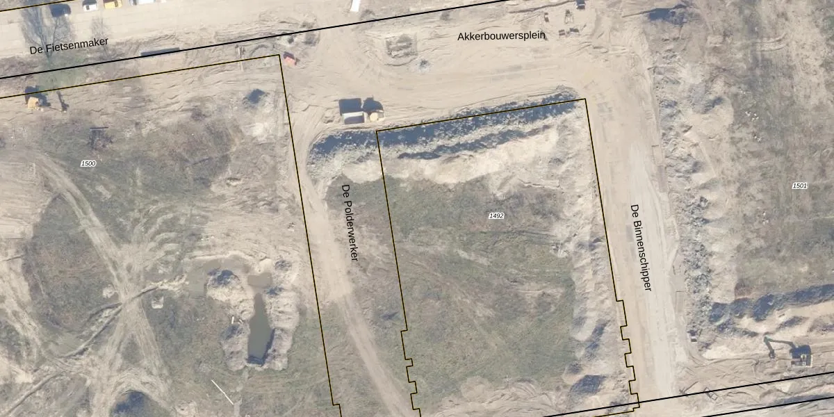 Het perceel waarop De Polderwerker 500 staat heeft een oppervlakte van 3787 m². Dit is een zeer groot perceel. De perceeloppervlakte wordt geregistreerd door het Kadaster. Gedetailleerde informatie over de maten van dit perceel kunt u vinden in het rapport Kadastrale kaart met maatvoering van De Polderwerker 500.