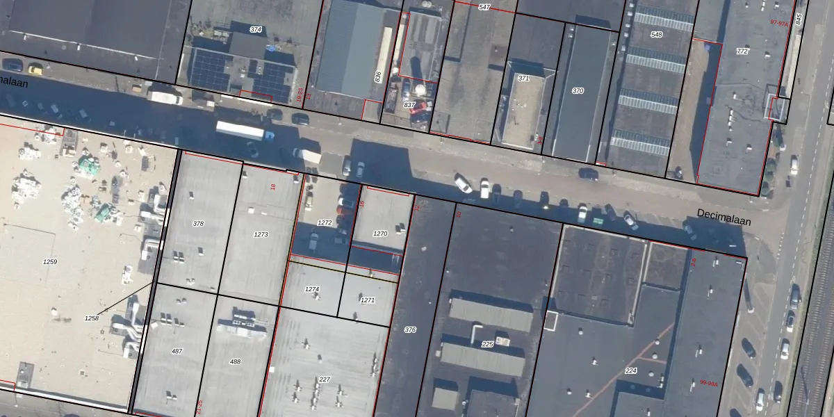 Het perceel waarop Decimalaan 12 staat heeft een oppervlakte van 646 m². Dit is een groot perceel. De perceeloppervlakte wordt geregistreerd door het Kadaster. Gedetailleerde informatie over de maten van dit perceel kunt u vinden in het rapport Kadastrale kaart met maatvoering van Decimalaan 12.