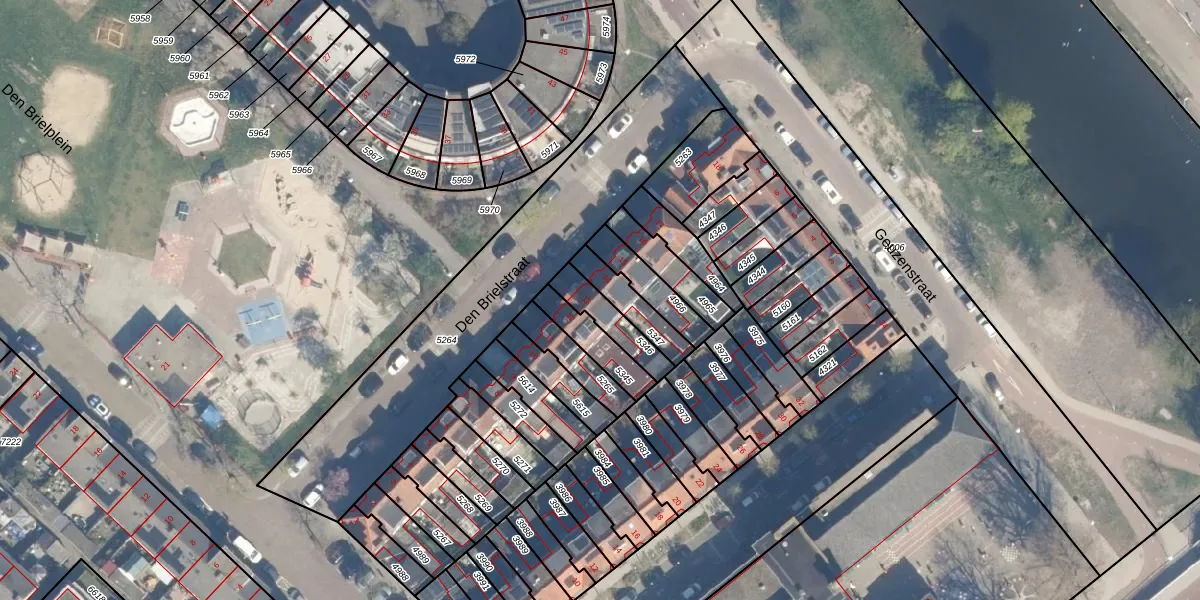 Het perceel waarop Den Brielstraat 13 staat heeft een oppervlakte van 110 m². Dit is een middelgroot perceel. De perceeloppervlakte wordt geregistreerd door het Kadaster. Gedetailleerde informatie over de maten van dit perceel kunt u vinden in het rapport Kadastrale kaart met maatvoering van Den Brielstraat 13.
