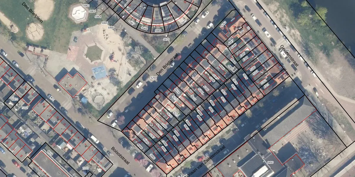 Het perceel waarop Den Brielstraat 9 staat heeft een oppervlakte van 102 m². Dit is een middelgroot perceel. De perceeloppervlakte wordt geregistreerd door het Kadaster. Gedetailleerde informatie over de maten van dit perceel kunt u vinden in het rapport Kadastrale kaart met maatvoering van Den Brielstraat 9.