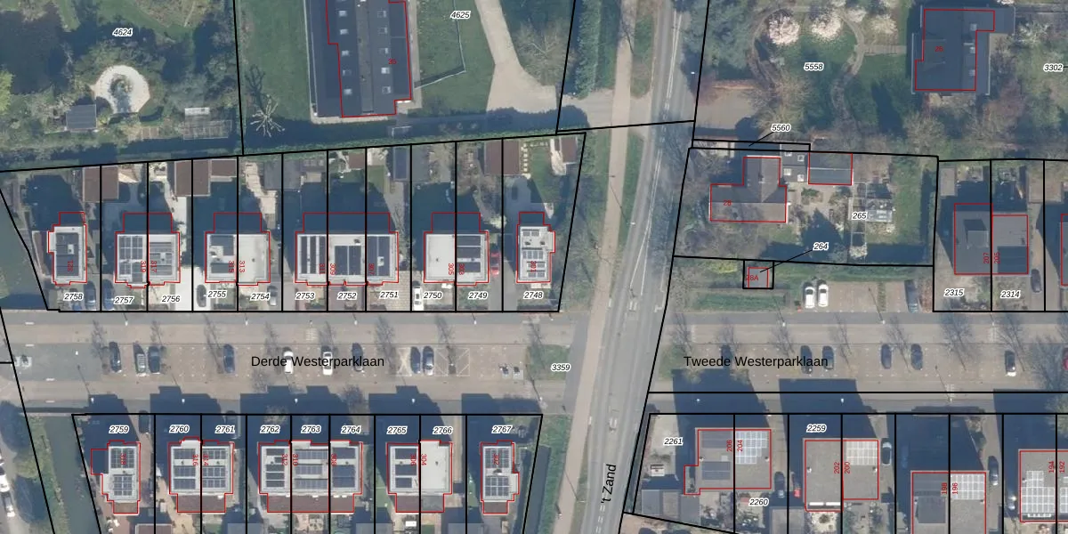 Het perceel waarop Derde Westerparklaan 301 staat heeft een oppervlakte van 427 m². Dit is een groot perceel. De perceeloppervlakte wordt geregistreerd door het Kadaster. Gedetailleerde informatie over de maten van dit perceel kunt u vinden in het rapport Kadastrale kaart met maatvoering van Derde Westerparklaan 301.