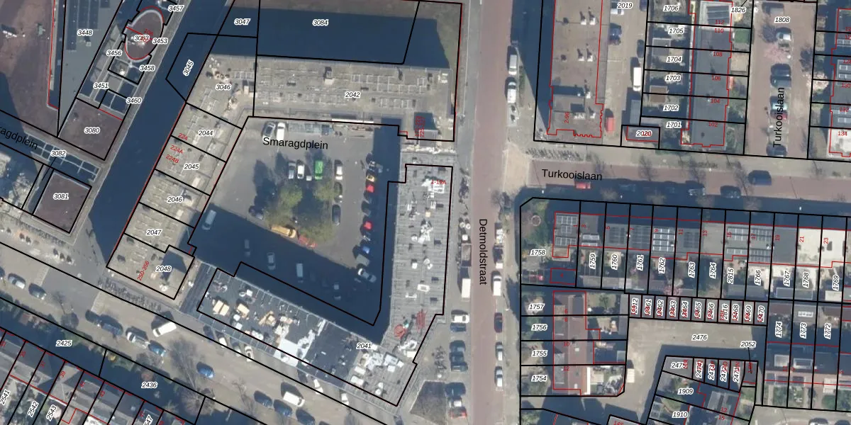 Detmoldstraat 5 is gelegen op kadastraal perceel TSG00B2041. Deze kadastrale aanduiding is uniek en wordt gebruikt door het Kadaster om eigendomsrechten en andere zakelijke rechten vast te leggen. Het perceel maakt onderdeel uit van de kadastrale gemeente Tolsteeg.