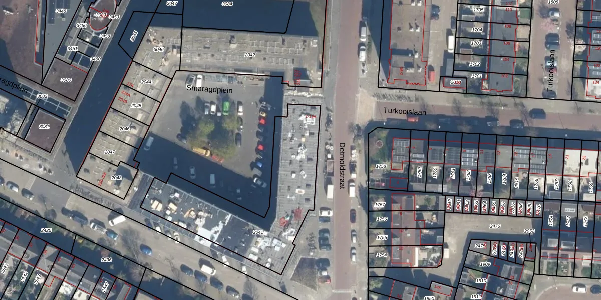 Detmoldstraat 7 is gelegen op kadastraal perceel TSG00B2041. Deze kadastrale aanduiding is uniek en wordt gebruikt door het Kadaster om eigendomsrechten en andere zakelijke rechten vast te leggen. Het perceel maakt onderdeel uit van de kadastrale gemeente Tolsteeg.