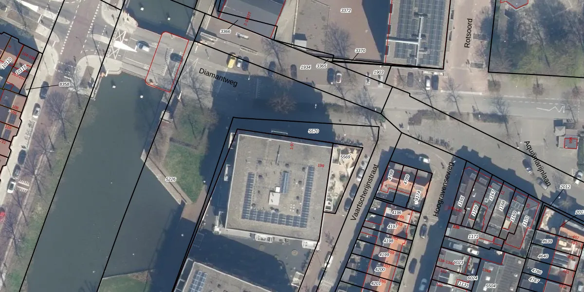 Het perceel waarop Diamantweg 9 staat heeft een oppervlakte van 3953 m². Dit is een zeer groot perceel. De perceeloppervlakte wordt geregistreerd door het Kadaster. Gedetailleerde informatie over de maten van dit perceel kunt u vinden in het rapport Kadastrale kaart met maatvoering van Diamantweg 9.