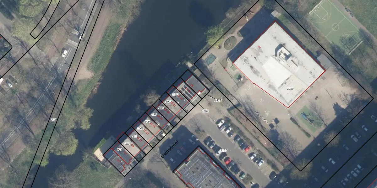 Het perceel waarop Dianadreef 25 staat heeft een oppervlakte van 87 m². Dit is een klein perceel. De perceeloppervlakte wordt geregistreerd door het Kadaster. Gedetailleerde informatie over de maten van dit perceel kunt u vinden in het rapport Kadastrale kaart met maatvoering van Dianadreef 25.