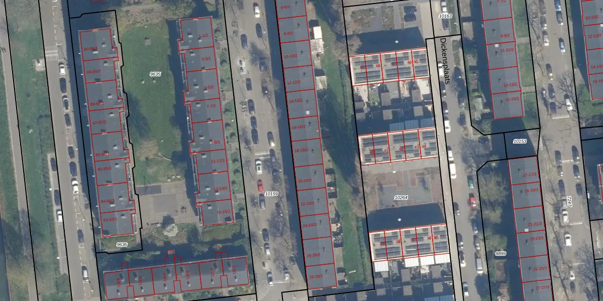 Dickenslaan 18-2 is gelegen op kadastraal perceel CTR00C10157. Deze kadastrale aanduiding is uniek en wordt gebruikt door het Kadaster om eigendomsrechten en andere zakelijke rechten vast te leggen. Het perceel maakt onderdeel uit van de kadastrale gemeente Catharijne.